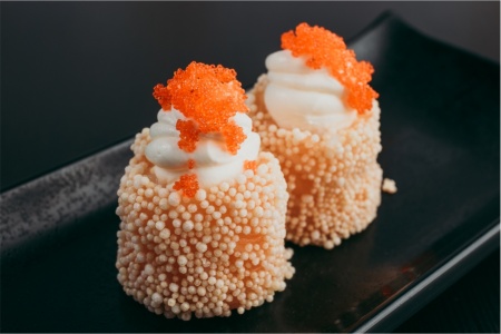 Маменори, рис, снежный краб, свит-чили, унаги соус, сыр сливочный, тобико, лук перо, кунжут.